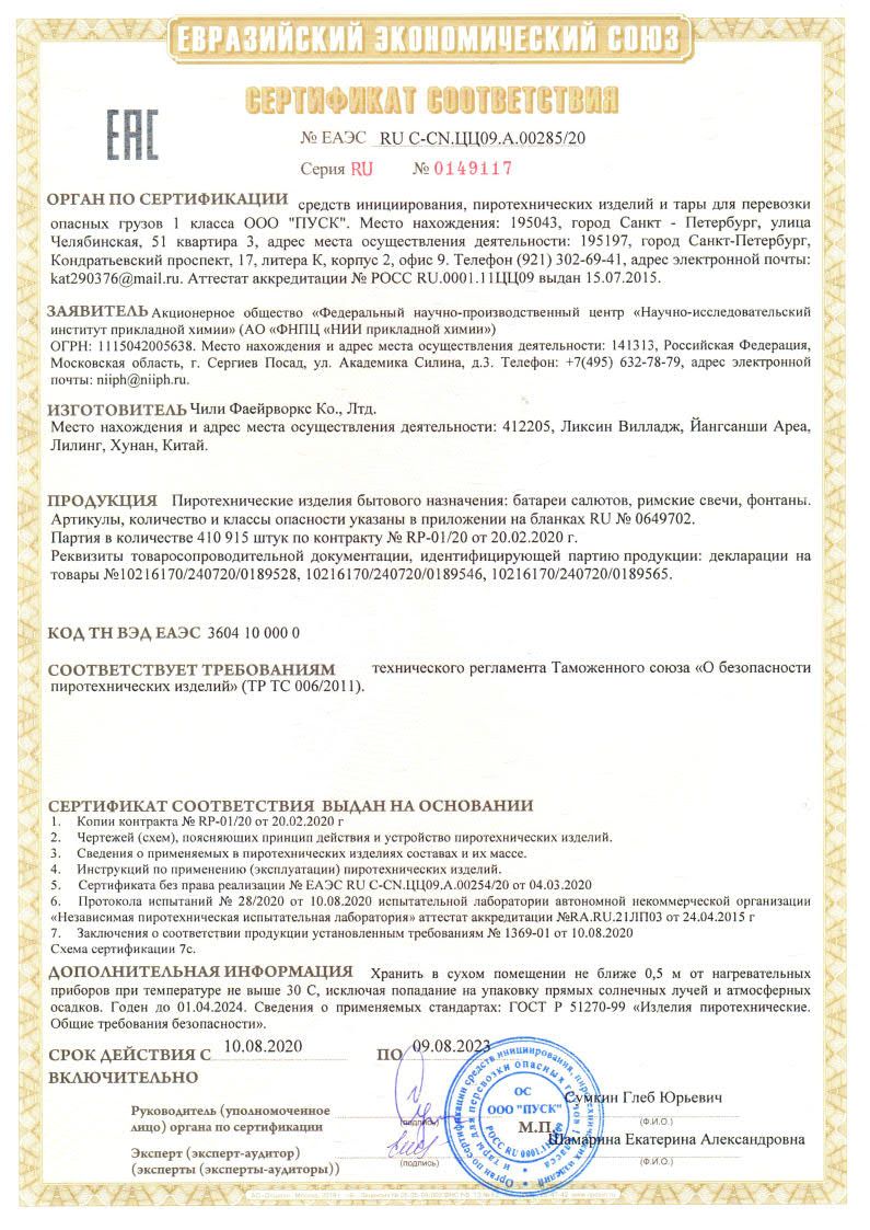 Эффекты:Двухуровневый фейерверк с веером.Нижний уровень: букеты из золотых форсов.Верхний уровень.Красные, желтые и золотые мерцающие пионы.Серебристые форсы с зелеными и фиолетовыми огоньками и трещащими звездами.Голубые, розовые и белые мерцающие трехцветные пионы.Серебристые форсы с зелеными огнями на концах, тысяча трещащих золотых хризантем.Веер: букеты из белых мерцающих огней.Золотые форсы, красные и золотые мерцающие огни.Веер: букетики из разлетающихся красных и золотистых трещащих звезд.Золотые и серебряные искристые форсы, с золотым мерцанием и треском.Форсы из серебряных искр, красных и зеленых жемчужин.