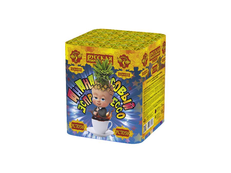 Разноцветные кометы, золотые с красными искрами трассы разрываются сферами из золотых с красными искрами форсов и зелёных огней. Короткие искристыетрещащиефорсы, зелёных, фиолетовых, синих и красных мерцающих огней. Золотые с золотыми искрами форсы. Зелёных мерцающие огни.Наличие