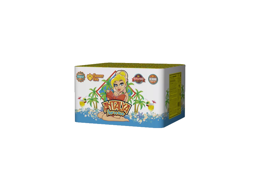 Эффекты: Разноцветные кометы разрываются сферами из: 1. серебряных форсов, красных огней и множества трещащих сфер; 2. красных, зелёных и белых мерцающих огней; 3. серебряных форсов, зелёных и трещащих огней; 4. фиолетовых огней, переходящих в короткие серебряные форсы, и зелёных мерцающих огней; 5. золотых форсов с золотыми мерцающими искрами и синих огней; 6. золотых форсов и красных мерцающих огней; 7. золотых трещащих форсов (залпы).Наличие