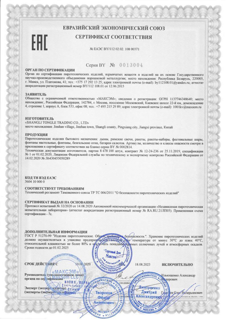 Эффекты:Красные; зеленые; белые мерцающие пионы с треском;