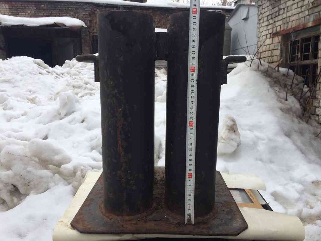 Установка из 4 мортир металл 4” (100мм) короткая (двойное дно) для запуска фейерверка