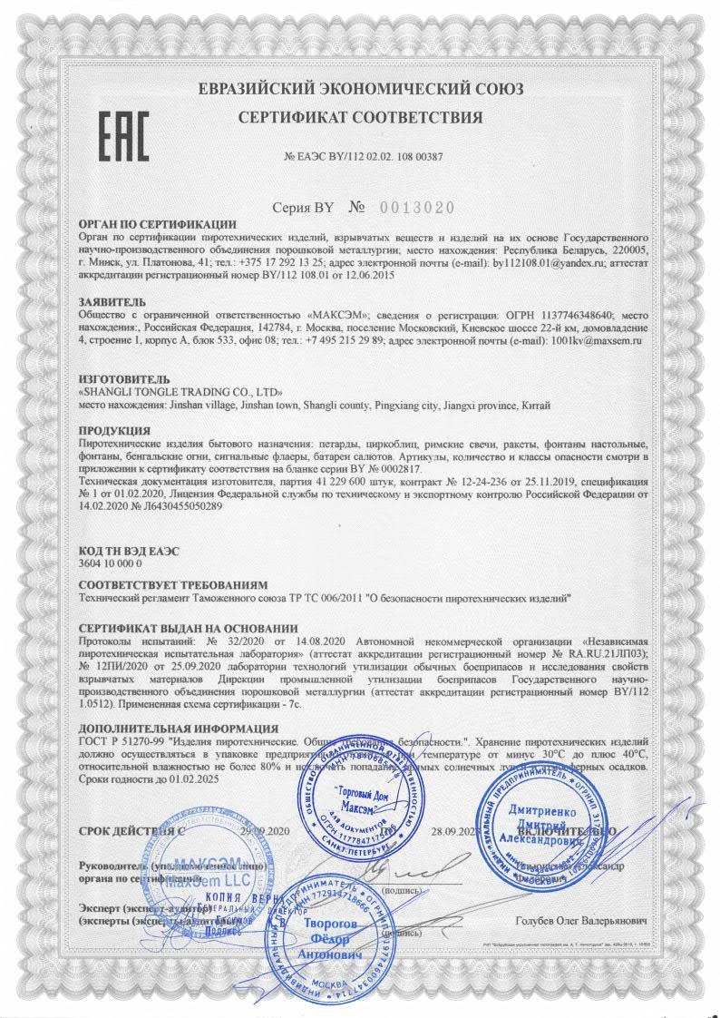 Эффекты:Выстреливает разноцветные кометы с яркими вспышками.