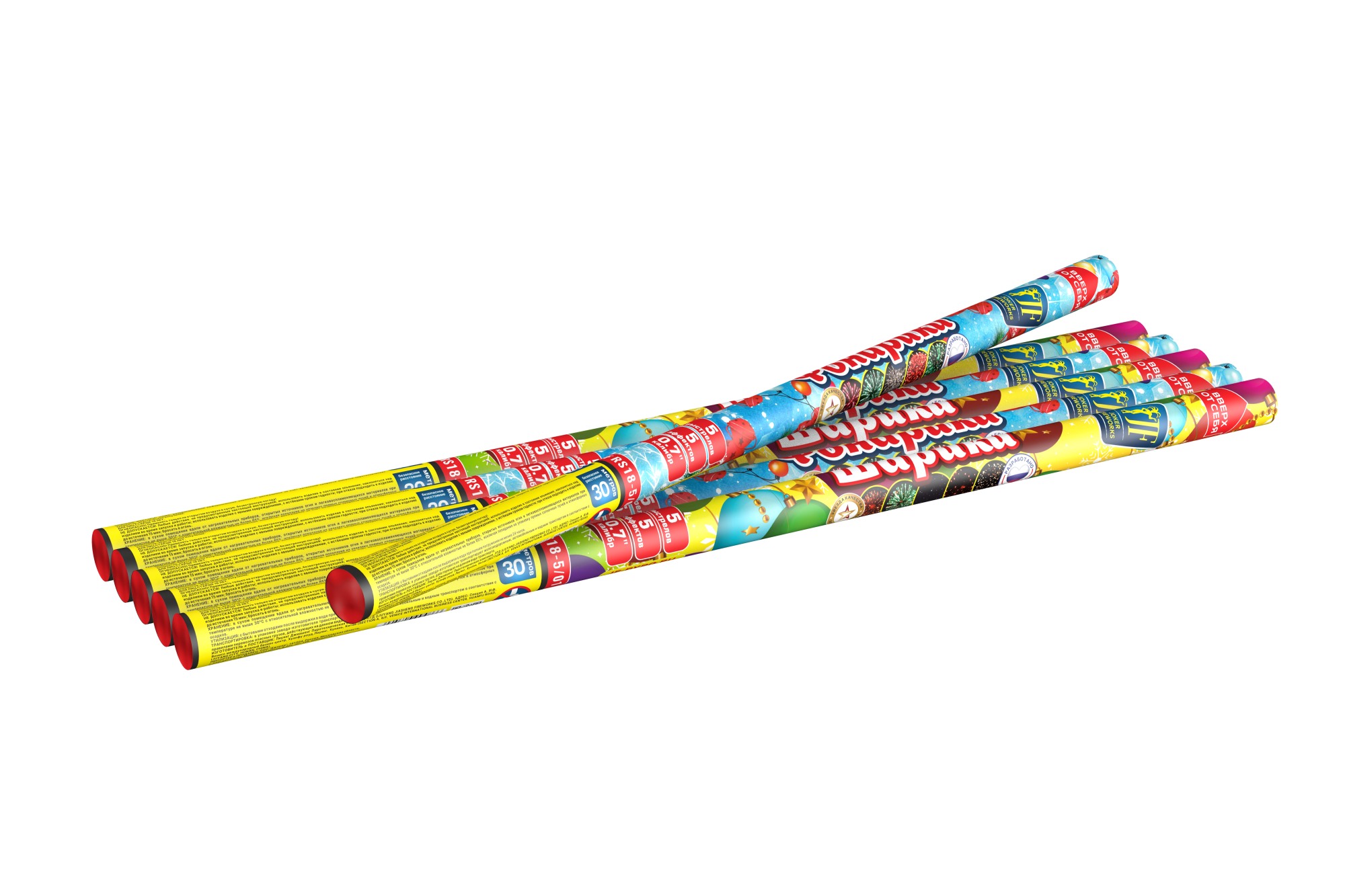 Эффекты:Разноцветные кометы и цветные облака искр.