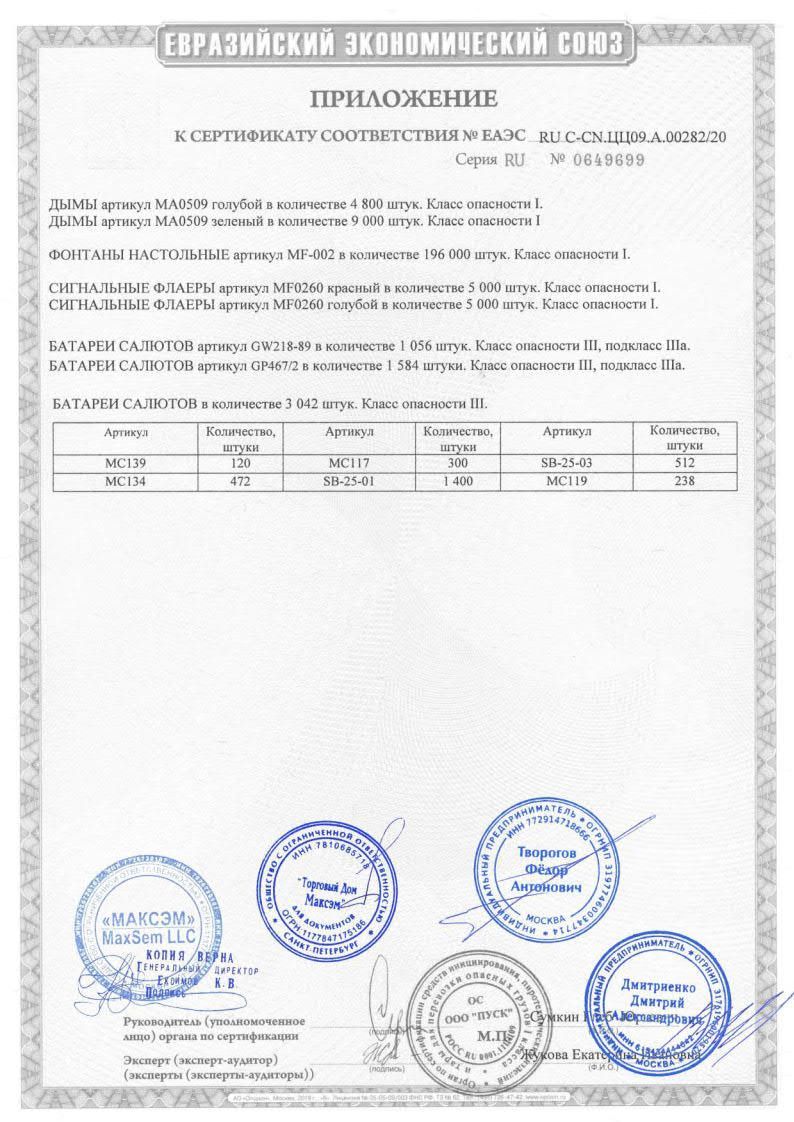 • Петарды, наземные и летающие фейерверки